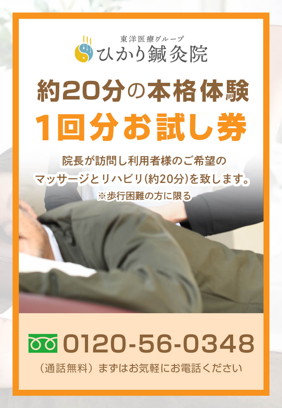 ひかり鍼灸院は名古屋全域ほか、三好市、豊明市、東郷町、東海市、刈谷市、大府市、知立市などのご自宅・老人ホームや施設・グループホームへ訪問し、患者様それぞれの症状にあわせマッサージ、リハビリ、鍼灸治療を行っております。(訪問の場合は、当院より直線距離16キロ未満まで)